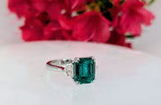Emerald 3.87 cts Zambian Octagon cut Emerald with minor oil with 2 pieces of 0.60ct shield cut diamonds on 18K white gold 4.61 grams (certified). "Price Available On Request"